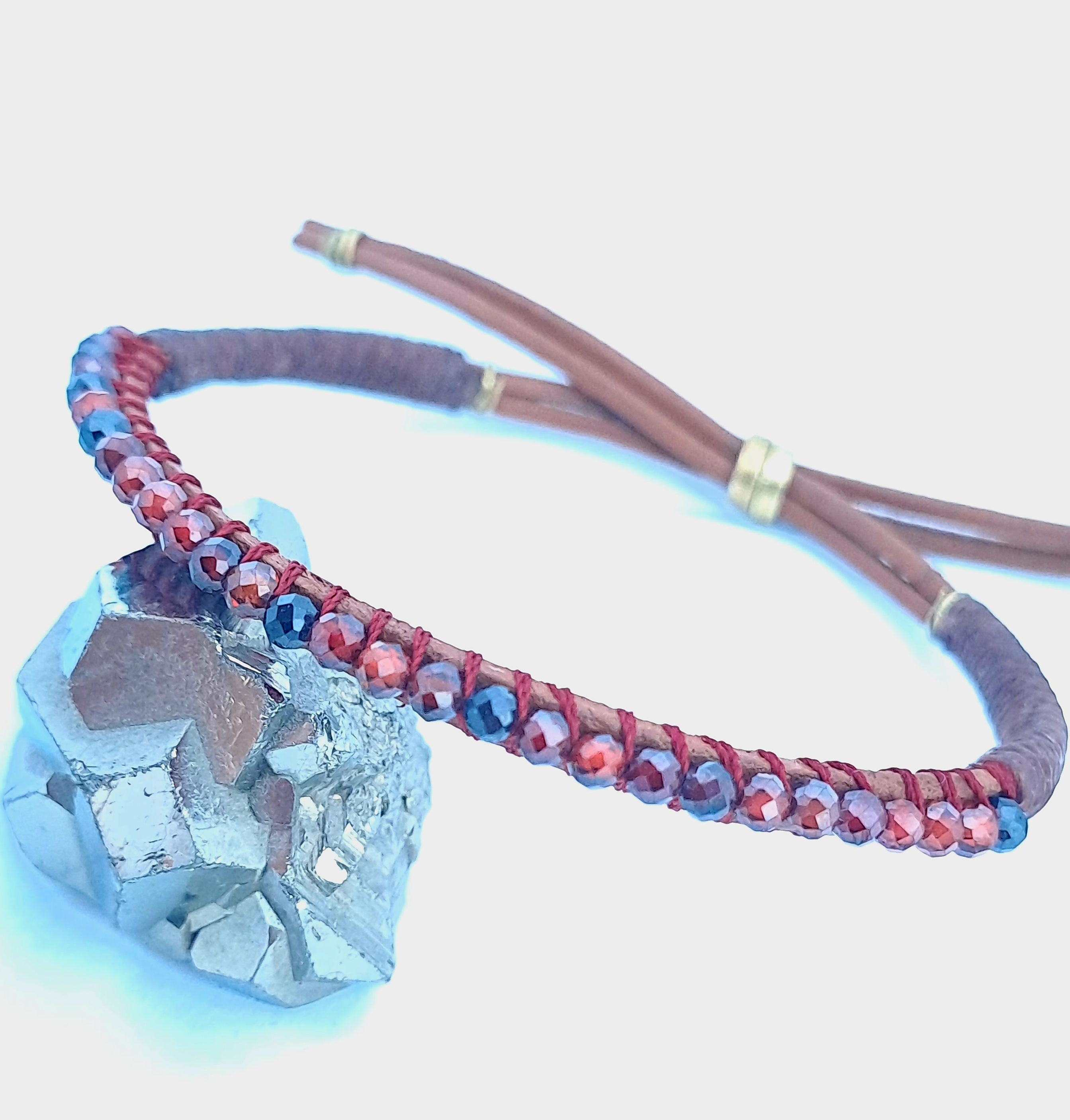Pulsera brazalete hecho a mano en piel combinado con zirconios. Ajustable.