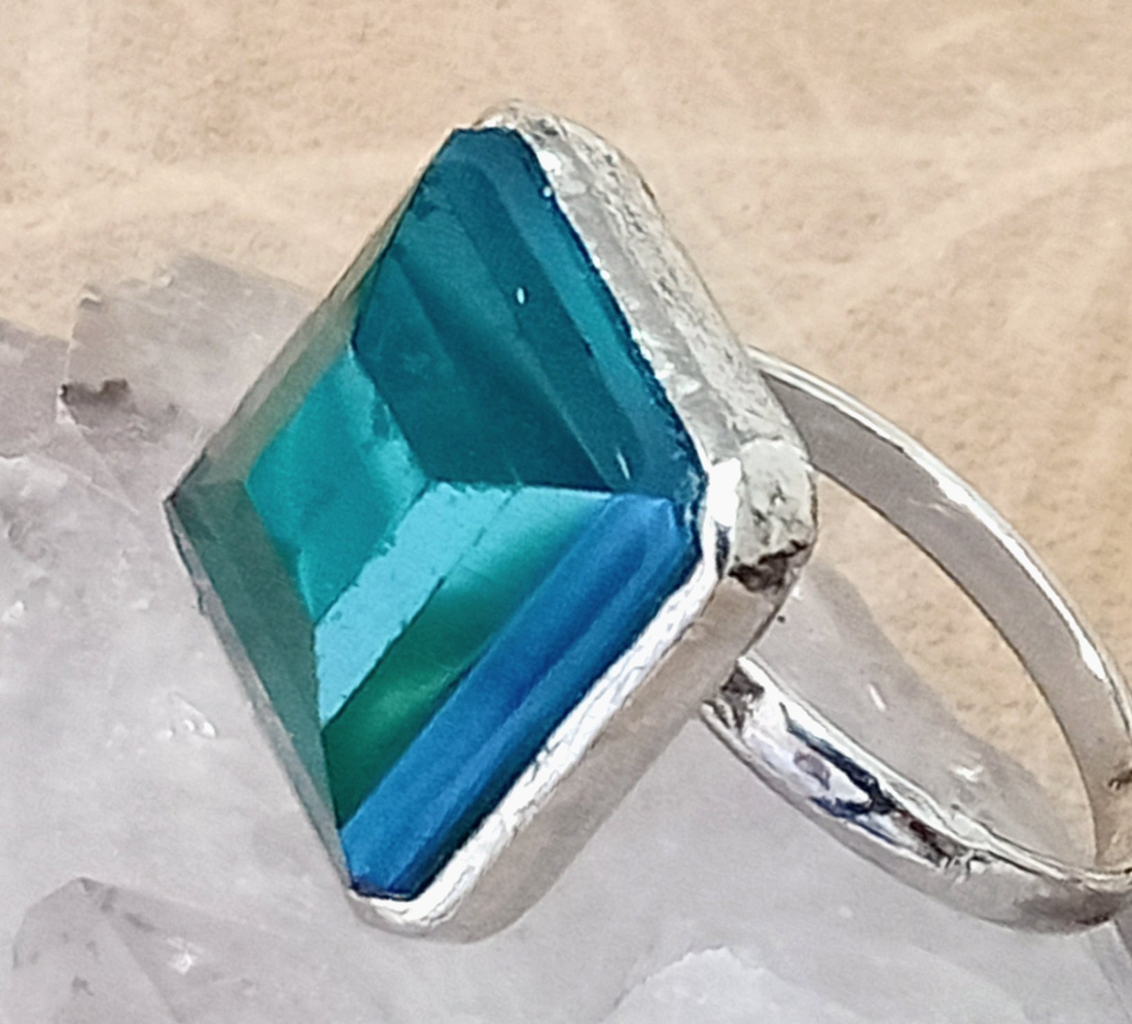 Anillo fundido con liga italiana fundido chapado en rodio y cristal de importación. Diseño exclusivo. El diseño podría variar levemente.